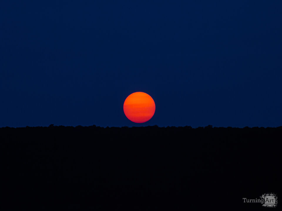The vivid colors of the sun against the dark blue skies was possible due to the California wildfires that occurred during September 2020. The smoke from those fires made it all the way to NY, creating a filter between the sun revealing its bright color and detail. Captured as the sun was falling below Schunemunk Mountain.