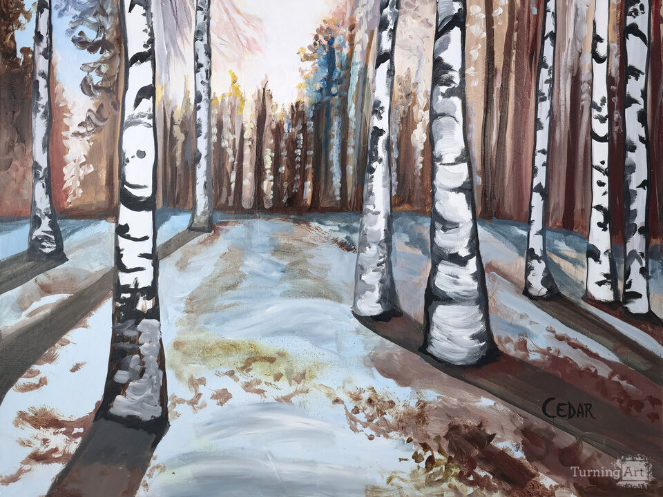 This painting was inspired by a walk in the snowy woods near the winter solstice.
