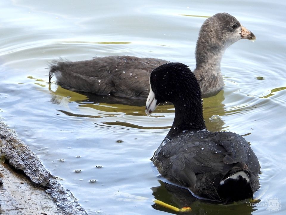 Mother and her baby taking a swim with the sun shining brightly over them making it adorable.