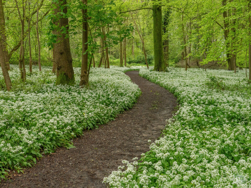 Woodland full of wild garlic during spring visit to England.