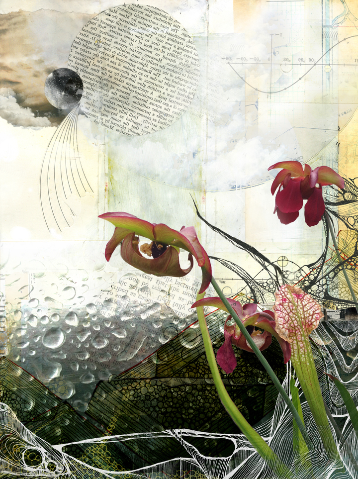 Jen McCleary attended Tyler School of Art (BFA Painting and Printmaking), University of the Arts (Continuing Education in Print Design), and University of Pennsylvania (MLA). She works both digitally and in traditional mixed-media collage and views the two seemingly different media as complimentary and rooted in the same process of collecting and arranging images in an intuititive and exploratory process. In 2019 she began to learn the craft of wheel-thrown ceramics, which she alters through decoupage and the traditional Japanese art of kintsugi (repairing broken items with gold and lacquer). This process of creation and destruction considers the inevitabilities of damage and healing as part of the beauty of an object. She also works as a freelance graphic designer specializing in book cover and layout design.